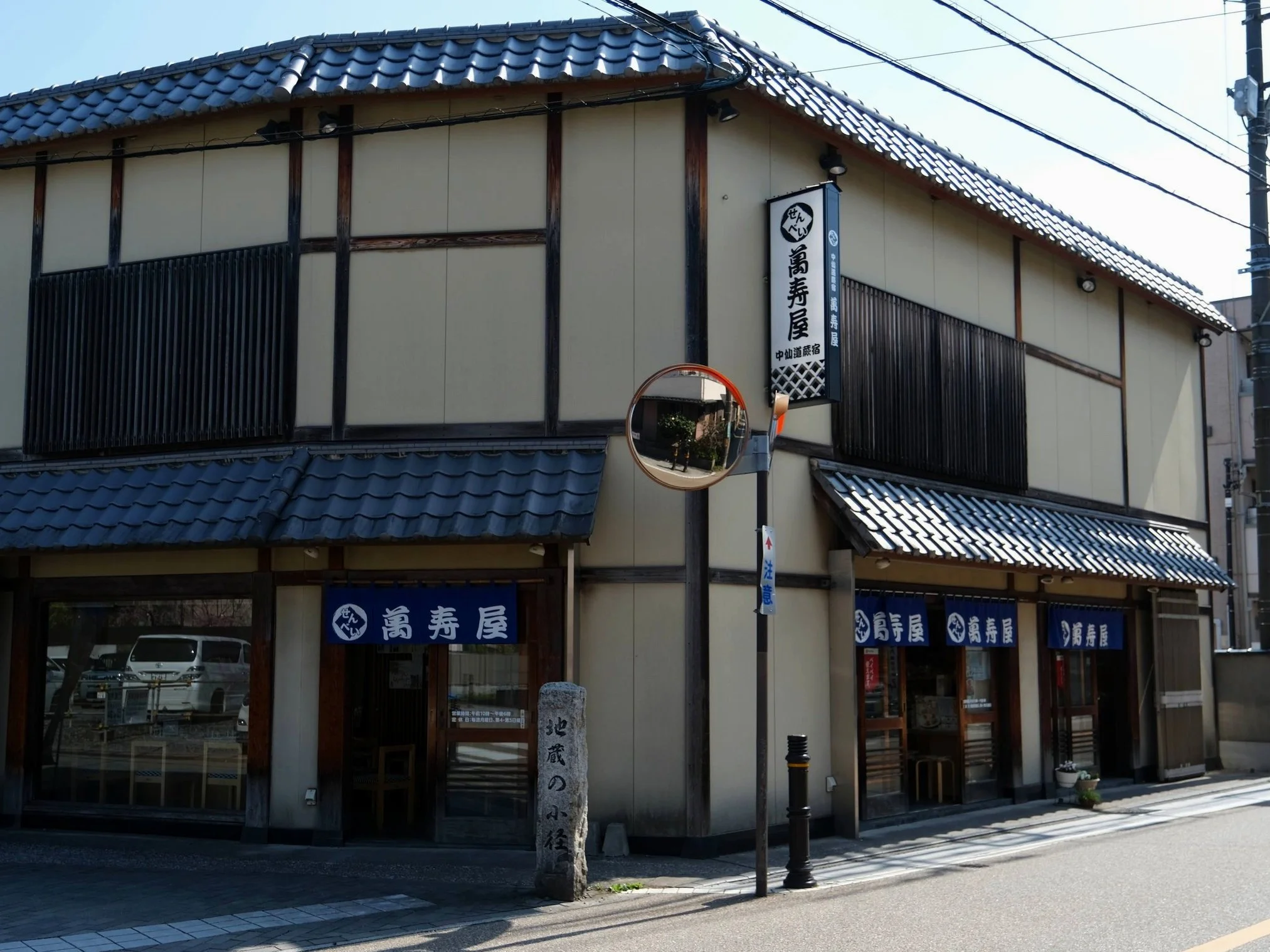 A traditional sembei shop founded in the Edo Period. Sembei, a seasoned, roasted rice cracker has been a snack in Japan for centuries. However, the modern version has its origin during the Edo Period in a town located 17 km west of Warabi called Sōka. Manju Ya also sells a sembei that is a meibutsu (or, famous item) of Warabi since Edo. It was a light, tasty snack for travelers and a popular item for sale on the road.